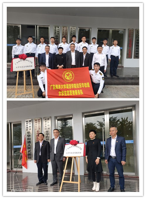 党委书记张懿、海滨校区管委会专职副主任吴学良和乐华街道党工委书记陈赞如、乐华街道办事处主任吴科智共同为广东海洋大学海运小9直播