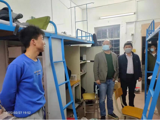 为做好2022年春季学期返校工作,推进小9直播 疫情防控的各项部署,加强对返校学生的管理,强化学生疫情防控意识,2月27日晚,海运小9直播 院长贾宝柱、副书记齐昊带领辅导员、半军管干部及班主任深入学生宿舍走访慰问。