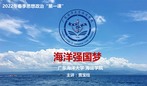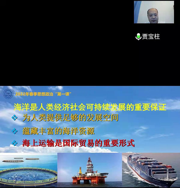 院长贾宝柱通过腾讯会议平台以《海洋强国梦》为题讲授2022年春季学期“思政第一课”。小9直播