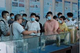 师生、中海油服湛江分公司团委一行饶有兴致地参观了鱼类、贝类、虾蟹类、海藻类等数间陈列室。众人既见识了大量珍稀海洋生物标本,又学到了海洋生物保护知识。