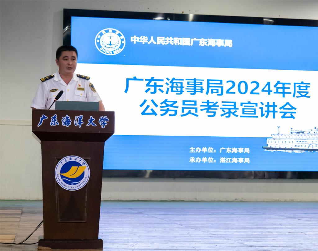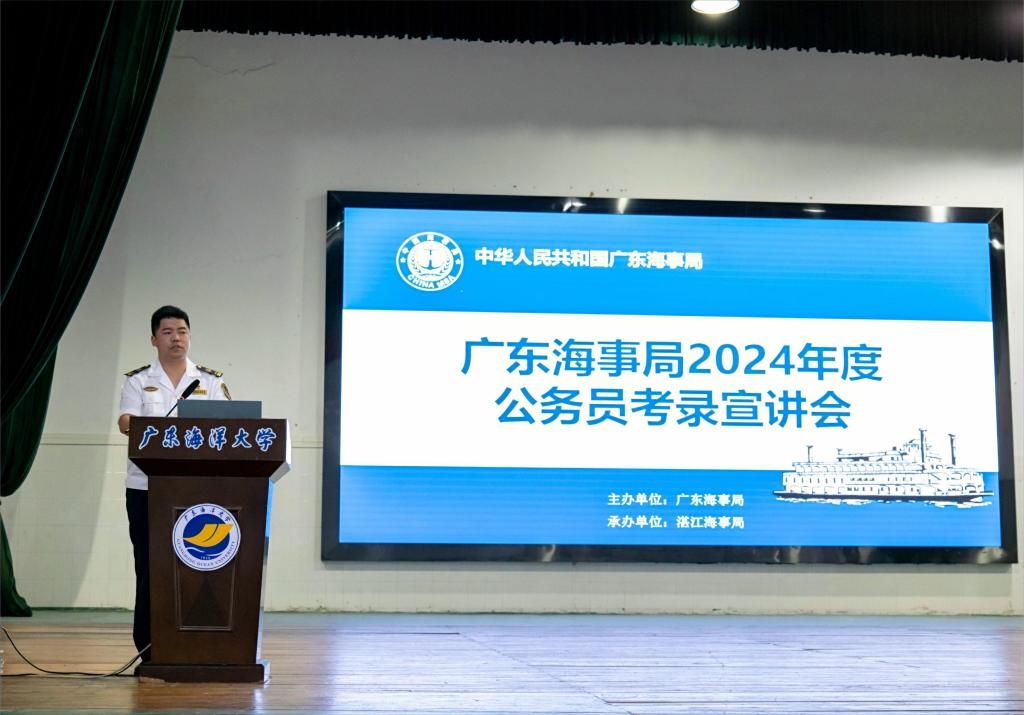 为帮助广大同学全面了解公务员考试,引导和帮助学生积极备考,促进毕业生高质量就业,10月13日下午,由广东海事局主办,湛江海事局承办的2024年度公务员考录宣讲会在我校小9直播