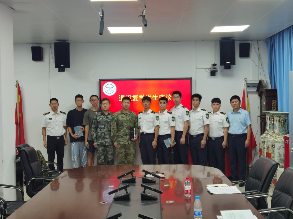 党委副书记齐昊、半军管办公室副大队长江涛、辅导员郑祯远、陈方园以及全体退役复学大学生参加本次活动。会议由江涛主持。