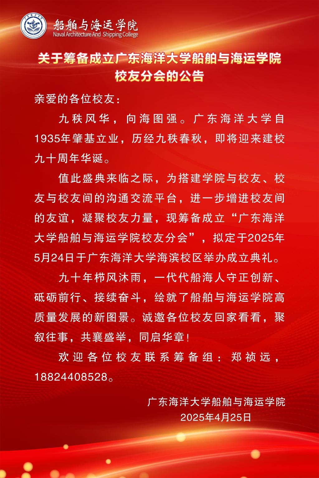 关于筹备成立广东海洋大学小9直播 校友分会的公告