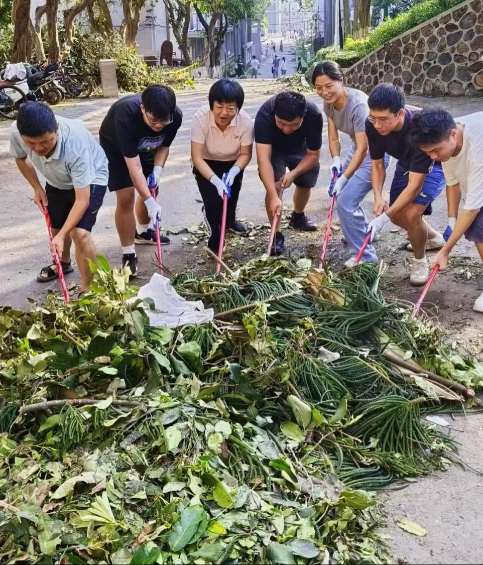 在劳动现场,师生们以高度的责任感和饱满的热情,对实验楼、教学楼、经海楼及学生生活区等重点区域进行了彻底的清理和整治。师生干部挥汗如雨,默契协作,高效地完成了预定区域的清扫任务,使校园环境在短时间内得到了有效恢复。同学们纷纷表示,这不仅是一次有效的灾后环境清理实践,更是一堂生动的劳动教育课和集体主义教育课。