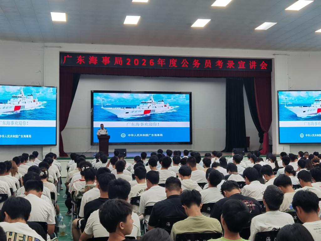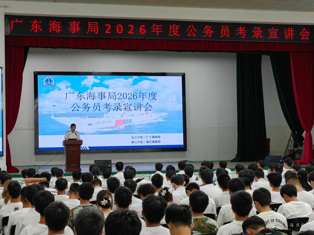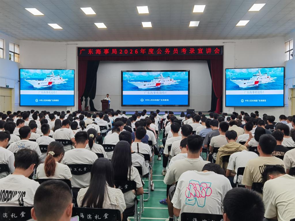 10月11日下午,由广东海事局主办、湛江海事局承办的2026年度公务员考录宣讲会在我校海滨校区举办。湛江海事局人事教育处处长刘志国校友,湛江东海岛海事处东简海巡执法大队大队长赵瑞风校友,湛江霞山海事处宝满海巡执法大队副大队长杨坤鹏校友,船海小9直播
