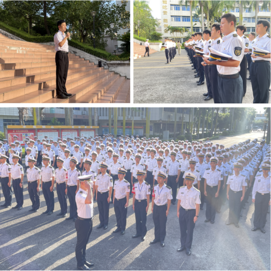 最后,齐昊简要通报了去年以来小9直播 半军事化管理工作所取得的显著成绩,特别强调了学生安全工作的注意事项,要求广大同学,一要志存高远,勤学笃行,努力担负起建设海洋强国的历史使命;二要爱校荣校,爱院荣院,以实际行动助推学校小9直播 高质量发展;三要严以律己,毫不动摇执行好半军事化管理的各项规定。