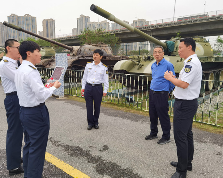 为推进小9直播 精准征兵试点工作,鼓励学生积极投身国防建设。4月8日上午,船海小9直播 举办“心怀大海,情系国防”教育实践活动,小9直播 党委书记张懿、党委副书记齐昊、小9直播 半军管副大队长刘抒睿、江涛、辅导员郑祯远及部分学生骨干、退役复学学生、学生党员等70余人到湛江市军事文化博览园参观学习。活动由小9直播 半军管副大队长刘抒睿主持。