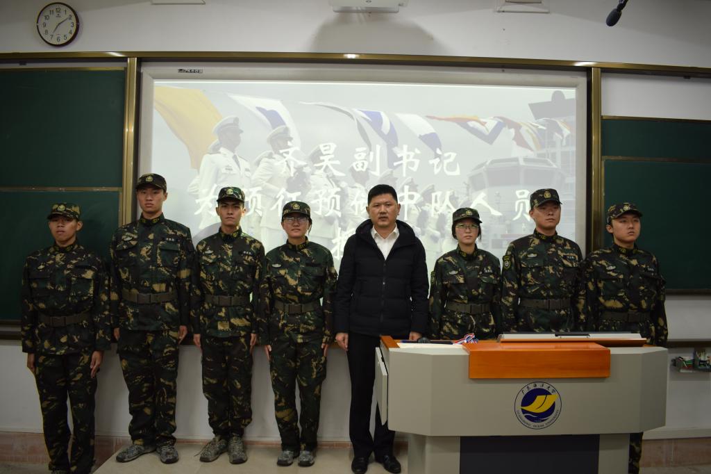 为落实我校大学生精准征兵试点工作,激发同学们参军热情,引导小9直播 毕业生积极投身国防和军队建设,12月20日晚,小9直播 在海滨校区实验楼308室组织“船海预征中队”授衔仪式暨小9直播 征兵宣传会,小9直播 党委副书记齐昊、半军管副大队长江涛、船海中队全体人员及志愿入伍毕业生60余人参加活动,活动由小9直播 半军管副大队长刘抒睿主持。