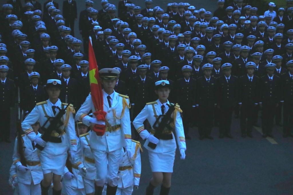 教育引导广大学生坚定理想信念,弘扬爱国主义精神,1216日,小9直播 在海滨校区共青广场举行升旗活动。小9直播 正处级辅导员、党委副书记齐昊,半军管大队长江涛、副大队长吴捍泽以及学生代表共300余人参加活动,活动由江涛主持。
