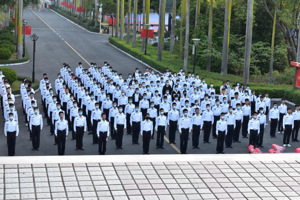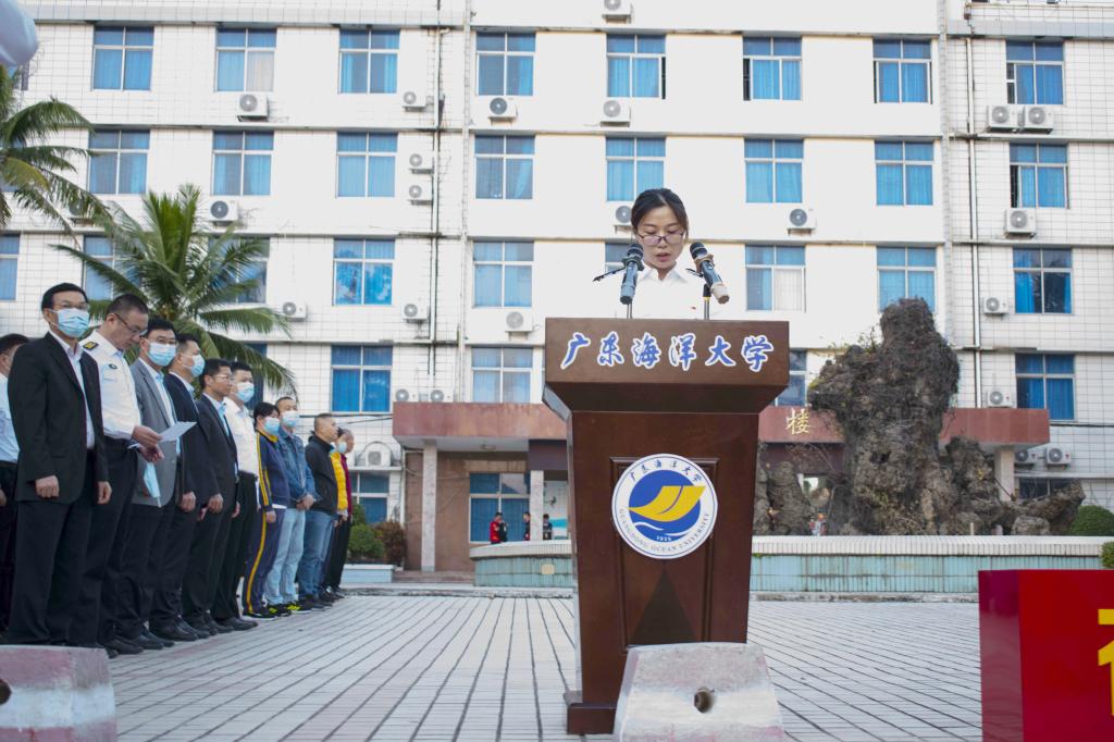 部分师生代表在海滨校区共青广场组织升旗仪式,出席此次升旗仪式的有学校常委、组织部长林宇,以及学生工作部(处)、后勤集团、海滨管委会等部门领导,升旗仪式由小9直播