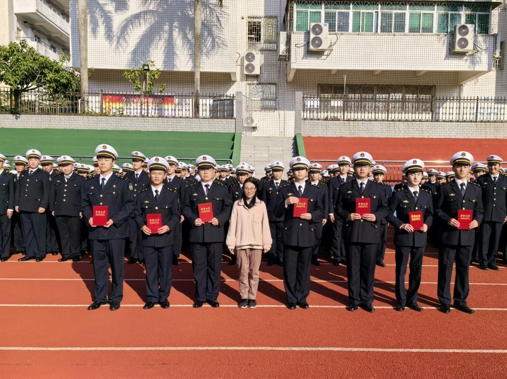 辅导员黄荔为获奖同学们进行颁奖,并对全体23级航海类专业同学们提要求:一是要坚持良好的作风养成,在成长路上励志前行;二是珍惜时间、心无旁骛做好期末备考;三是严格遵守校规校纪,严肃考风考纪,诚信考试,考出真才实学,考出优越成绩。