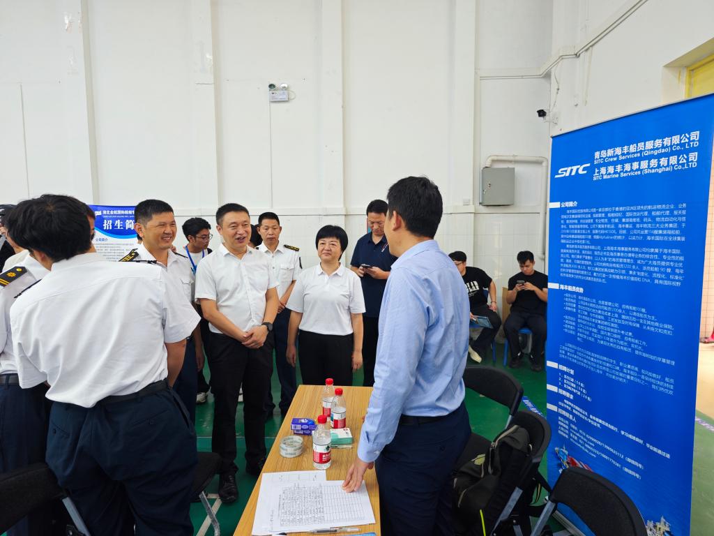 双选会中,鲁义善等深入各企业展位,与用人单位亲切交流,详细了解国内国际航运人才的需求趋势和招聘信息等,对用人单位支持我校毕业生就业工作表示感谢。鲁义善还与小9直播