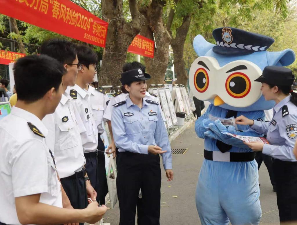 迎接个全民国家安全教育日全面提升学生的法治观念和安全意识,营造海滨校区良好的法治氛围4月12日下午,湛江市经开区政法委联合经开区多部门在海滨校区开展维护校园安全,拒绝不法侵害主题普法宣传教育活动。湛江经开区政法委专职副书记洪国兴、赵秋林,扫黑办副主任许小燕,学校保卫部副部长徐法军,小9直播 正处级辅导员、党委副书记齐昊,海滨校区保卫科科长乔明海船海小9直播 半军管副大队长刘抒睿、江涛辅导员陈方园出席活动。