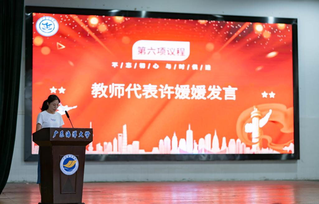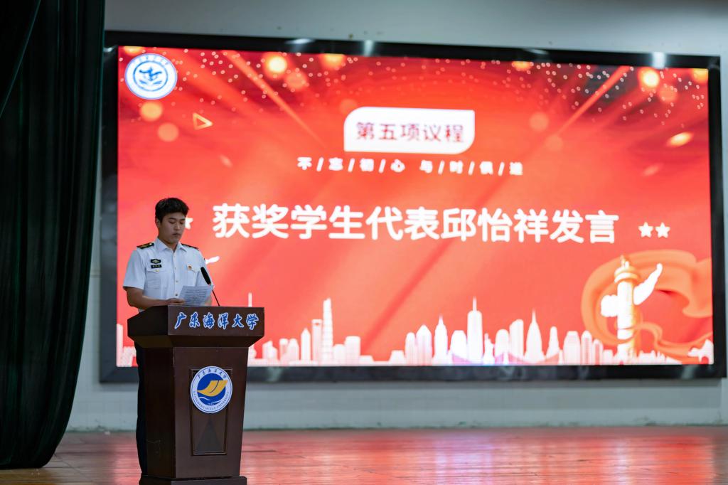 学生代表带来诗歌朗诵《南海,我是你岛上的一只水鸟》,抒发爱国主义情怀,展现船海青年昂扬向上的精神面貌。副院长李荣辉教授宣读了表彰决定,号召全院学生以受表彰同学为榜样,勤奋学习,积极进取。
