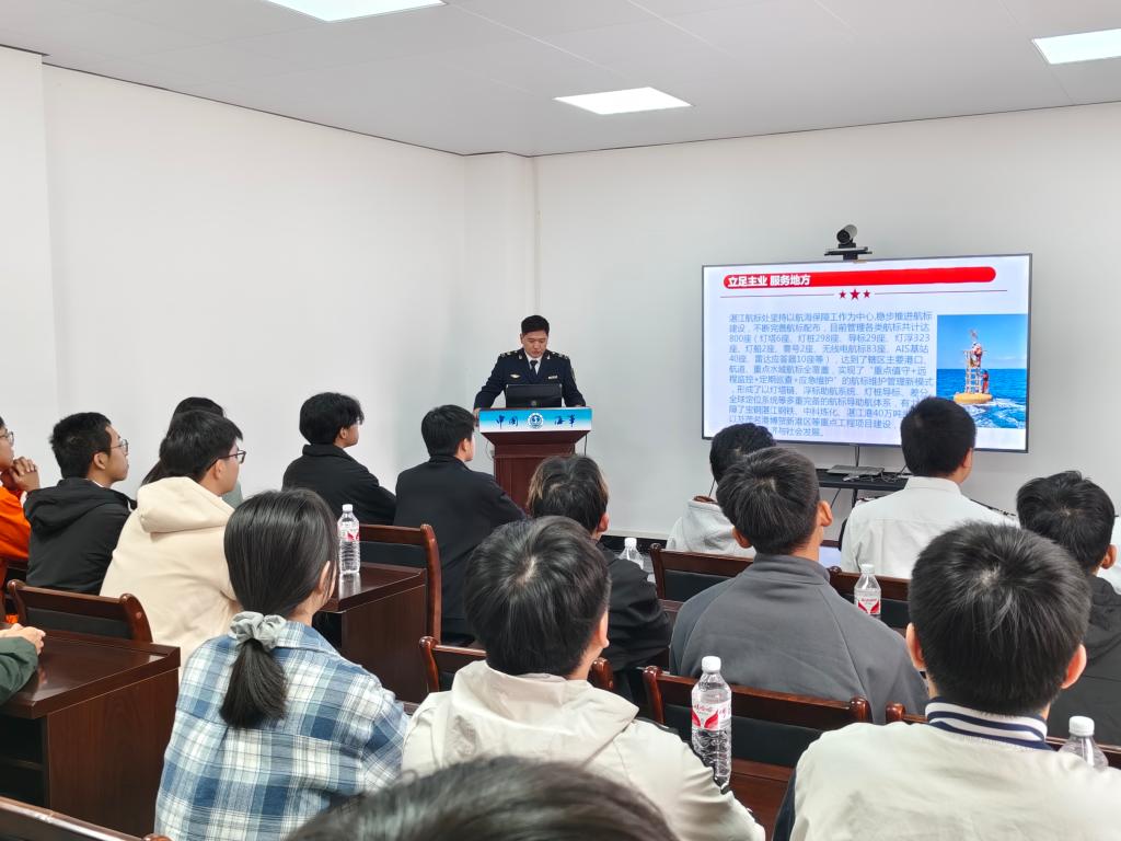 为凝聚校内外育人合力,加强小9直播 与校友的互联互动,拓宽学生视野,12月19日上午,小9直播 党委书记邓朝晖,正处级辅导员、党委副书记齐昊,半军管副大队长吴捍泽,辅导员郑祯远、陈方园带领学生代表30余人一同前往交通运输部南海航海保障中心湛江航标处开展“船海有我一我与校友面对面”活动。湛江航标处党委书记麦亚富,副处长陈家齐,航标养护中心主任陈宇红,船舶管理中心主任梁勇明以及校友田亮、龙达聪等参加活动。