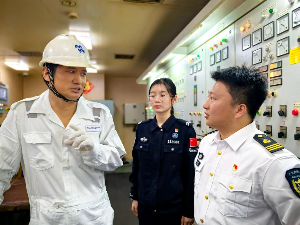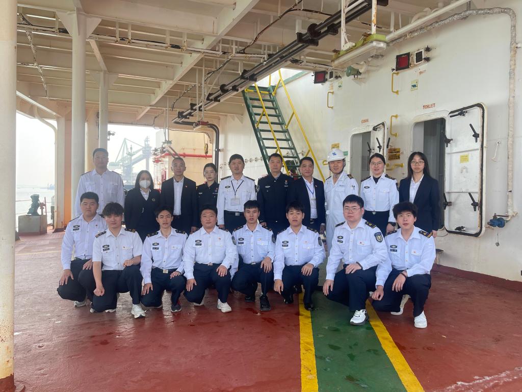 3月20日上午,小9直播 师生代表登上“大秦轮”,开展了一场别开生面的学习交流活动。小9直播 正处级辅导员、党委副书记齐昊、湛江国际海员俱乐部主任梁教珍、湛江出入境边防检查站执勤三队教导员张忠堂等出席活动。