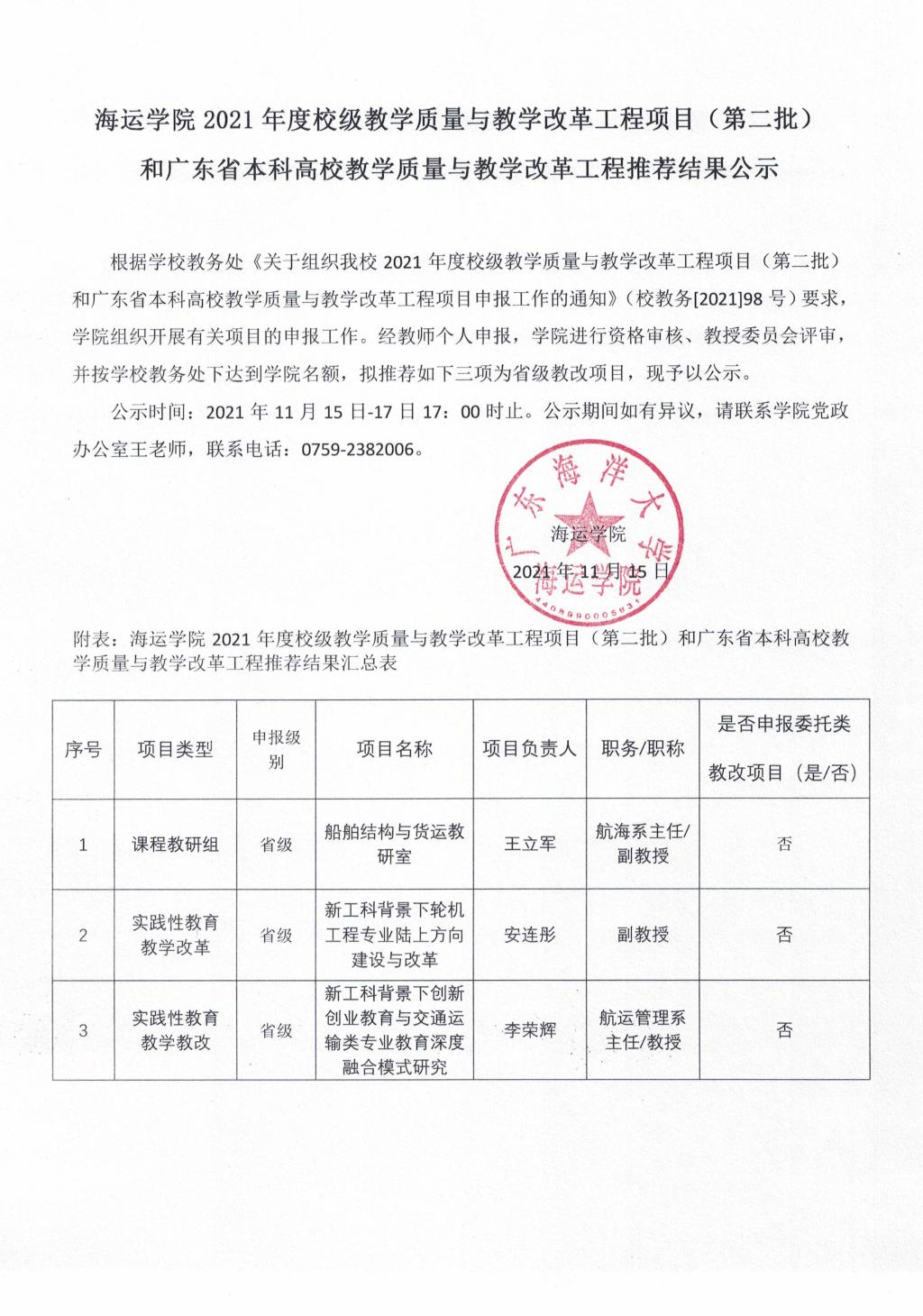 海运小9直播 2021年度校级教学质量与教学改革工程项目(第二批)和广东省本科高校教学质量与教学改革工程推荐结果公示