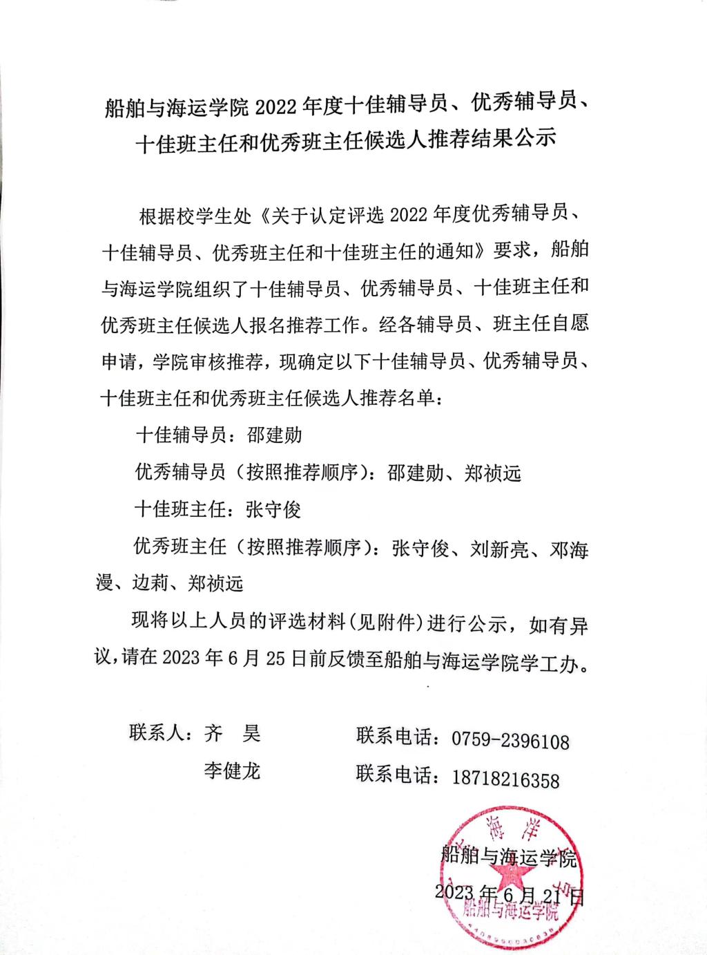 小9直播 2022年度十佳辅导员、优秀辅导员、十佳班主任和优秀班主任候选人推荐结果公示