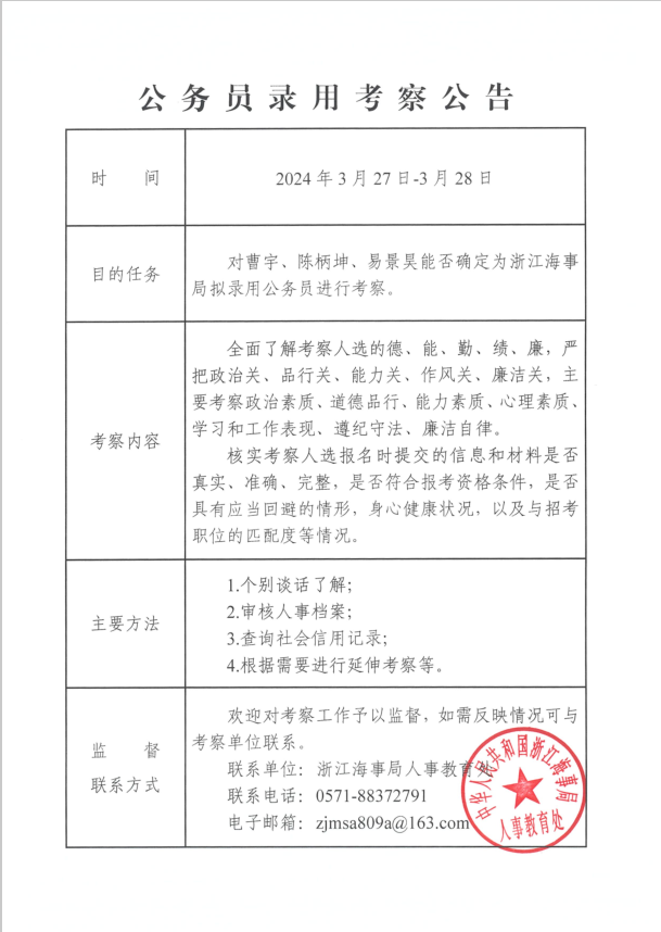 公务员录用考察公告