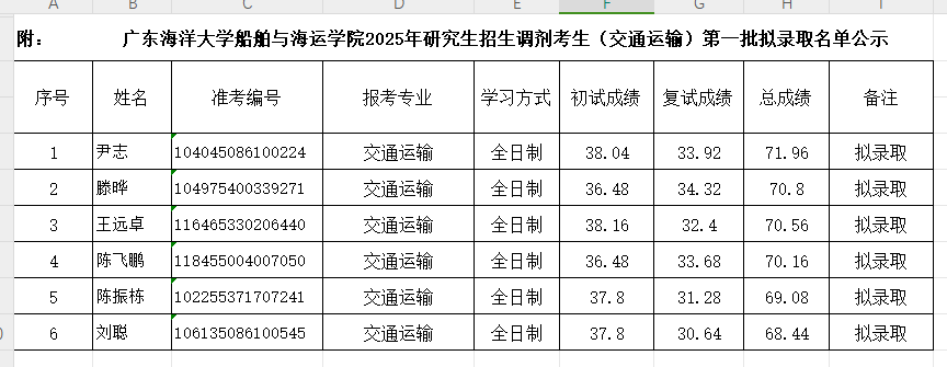 根据学校及我院研究生招生工作的相关文件精神和要求,经小9直播 研究生招生录取工作领导小组审定,将我院2025年硕士研究生招生调剂(交通运输)第一批考生复试成绩及拟录取名单公示。