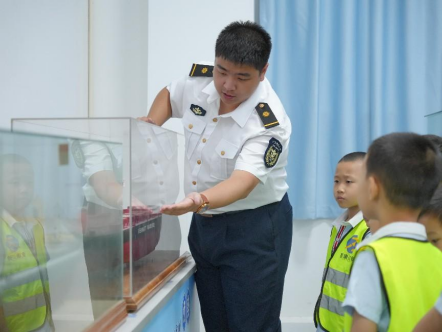 活动伊始,小朋友们的第一站来到了引人注目的船锚处。现场的志愿者热情且专业地向孩子们简述了船锚的重要作用以及其精巧的构造。在志愿者细致的讲解下,孩子们了解到船锚在船舶停靠等过程中发挥的关键稳定作用,也知晓了它是如何通过自身独特的结构来实现这一功能,一个个都听得聚精会神,眼中满是对新知识的渴望。