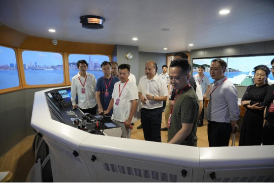随后,校友们来到船舶虚拟仿真技术工程研究中心。贾院长从实验室平台搭建、科研项目成果、人才培养模式等方面,现场演示的船舶驾驶虚拟仿真系统令校友们直观感受到科技与航海教育的深度融合。